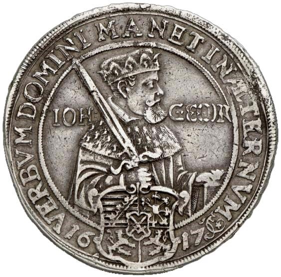 1617, Op het eerste eeuwfeest van de Hervorming, vz: Johann Georg I(1611-1656), keurvorst van Saksen, met tekst: Verbum Domini manet in Aeternum 1617/ Gods woord houdt stand in eeuwigheid (1 Petrus 1:25), kz: Frederik III de Wijze (1486-1525), beschermheer van Luther, met tekst: Seculum Lutheranum/de lutherse eeuw 1517, zilver, diverse afmetingen.